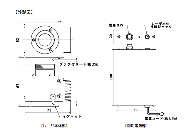 | レーザ波長/出力 | 波長 635 nm、最大定格出力 10・15 mW | |